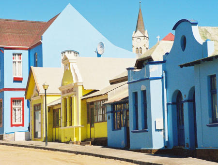 Kaufmanns Adolf Lüderitz in einer Bucht gegründet. Hier eine farbenfrohe Häuser-