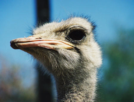 Ein neugieriger Strauß auf der Straußenfarm in Okahandja.